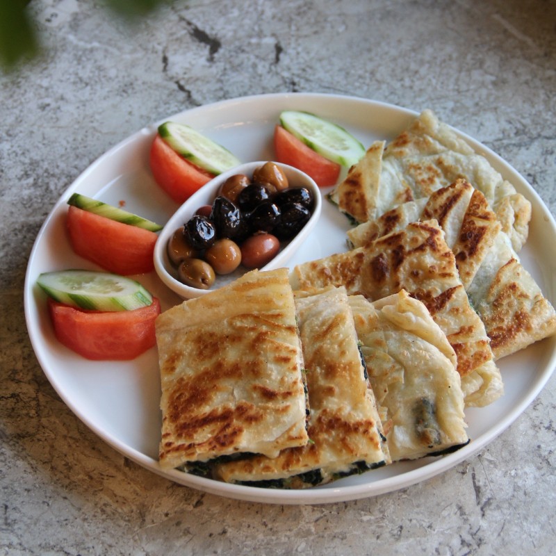 Ispanak, kaşar peyniri, domates, salatalık, zeytin